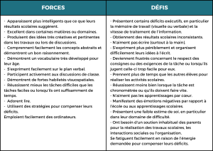 Tableau 1 – Caractéristiques associées à la double exceptionnalité