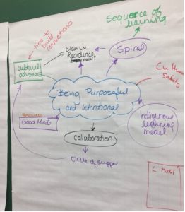 Les conseillers culturels étaient/sont affiliés à diverses communautés et organisations autochtones. En voici quelques exemples : Plenty Canada; Metis Nation of Ontario; Inuuqatigiit Centre for Inuit Children, Youth and Families; Akwesasne Television; Ontario Federation of Indigenous Friendship Centres; le Programme d’information sur les études postsecondaires pour Autochtones. Non seulement elles se sont jointes à nous lors des séances d’apprentissage professionnel, mais elles nous ont également aidés à planifier et à offrir cet apprentissage. Au cours d’une conversation en mars 2022, Candace Lloyd (détentrice des connaissances traditionnelles métisses et candidate à la maîtrise en éducation de l’Université Queen’s), réfléchissant à ses expériences, a déclaré :