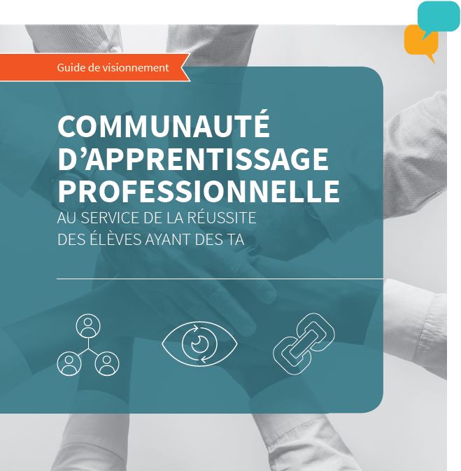 Cette vidéo présente la façon dont le Conseil scolaire catholique Franco-Nord fait la mise en œuvre efficace d’une communauté d’apprentissage professionnelle (CAP) au sein de ses écoles afin de permettre aux intervenants de collaborer en vue d’établir une vision commune pour améliorer le rendement de tous les élèves et en particulier celui des élèves ayant des troubles d’apprentissage. C’est à partir de la CAP que les professionnels examinent et analysent collectivement les données des élèves pour ensuite procéder à une pratique réflexive en vue d’améliorer continuellement leur rendement en planifiant les interventions dans une optique de démarche par étapes. La CAP aide à améliorer chez les professionnels de l’enseignement, la compréhension des éléments pédagogiques importants à la réussite des élèves et contribue ainsi à l’amélioration d’un sentiment d’efficacité personnelle et professionnelle.